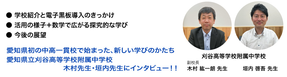 ⼦どもたちが“探究し、創造し、社会を動かす”学びをこれからも後押ししていきたいと思います。」刈⾕⾼等学校附属中学校では、電⼦⿊板が“創造的な探究学習”を⽀える存在として、未来の「チェンジ・メーカー」を育む舞台の⼀翼を担っています。