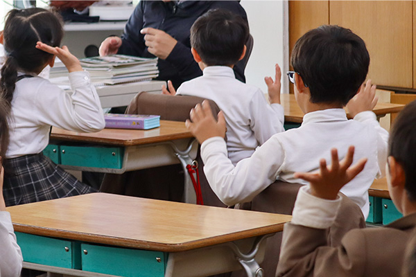 児童⼀⼈ひとりの経験にかかわらず、「英語はまず楽しむもの」という姿勢を⼤切にし、安⼼して声を出せる雰囲気づくりを重視しています。その結果、授業中には⾃然な発話や笑顔が増え、英語が⾝近なコミュニケーション⼿段として着実に根づき始めています。
