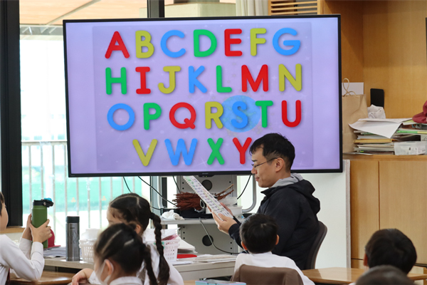 同校には、モジュールタイムを使った活動として、お昼の“海の時間”があります。この時間を活⽤し、全学年が同時に英語学習に取り組むことで、15分間の積み重ねが週1時間以上の学びとなり、⽇常的に英語へ触れるリズムが⾃然と形成されています。