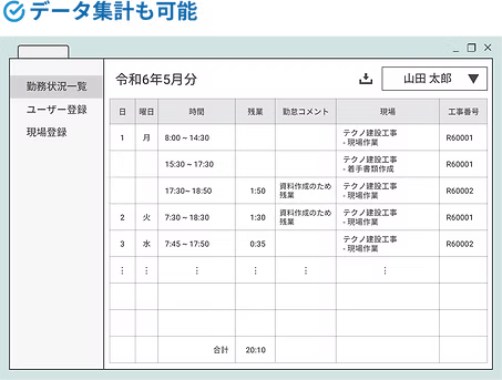 - ▶ 出面、労務管理の集計に時間がかかる。