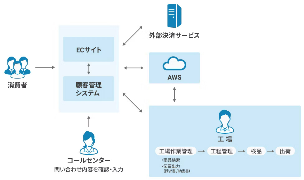 ECサイトをフルスクラッチで構築。受注管理、印刷会社との連携システム、生産の見える化、日次・月次処理、コールセンター用の顧客管理システムなどを一連のサービスとして提供しました。