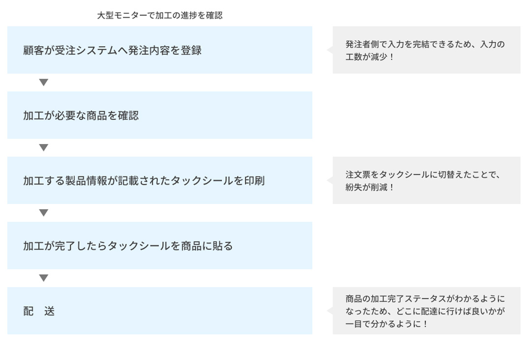 アナログで行なっていた受注・生産管理のシステム開発を行い、作業工程を見える化したことで、無駄やミスが大幅に削減され、作業品質を向上させることができました。
