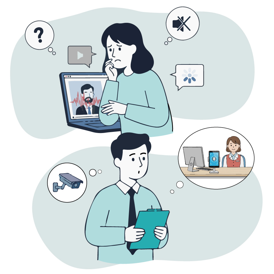 マイクや映像の調整が難しい… - 来客や社員の入退室をスムーズにしたい