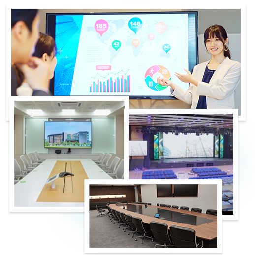どの国でも、どの会議室でも、同じように簡単操作。会議・セミナー・受付・教育現場まで、設計から保守までをワンストップで。