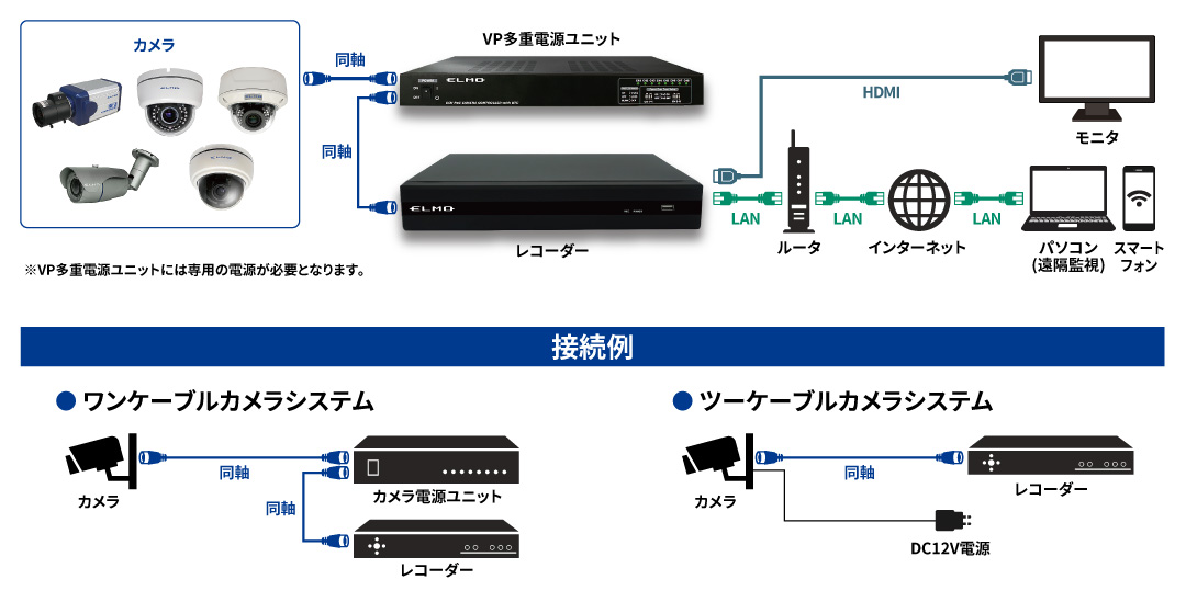 システム全体の費用を抑えながら、高画質対応の最新機器を導入できることが大きな特長です。特に小規模なシステムやアナログからのリプレイスに最適です。